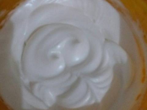- Masukkan adonan putih telur 1/3 adonan k adonan A. lakukan hingga adonan putih telur habis dan tercampur rata dgn adonan A.