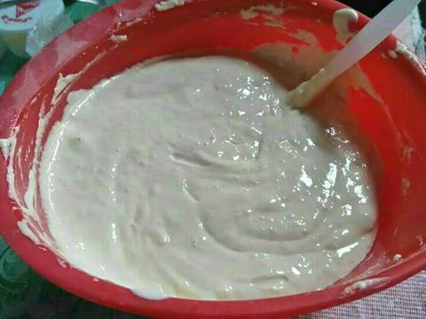 2. Mixer telur, gula dan sp dg kecepatan sedang-tinggi sampai putih, kental berjejak.
