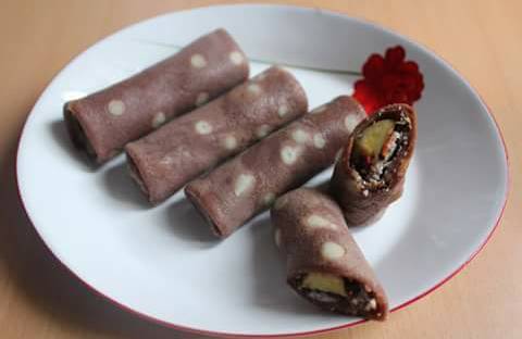 Resep Dadar Gulung Coklat Polkadot (isi pisang, keju, mesis)