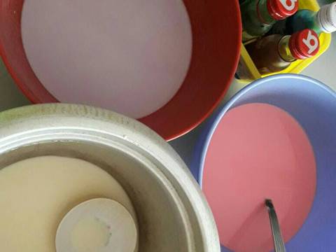 Campur semua bahan kecuali pewarna aduk rata.