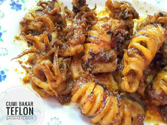 5. Panggang diatas teflon sambil di oles2 bumbunya sampai matang. Jangan terlalu lama ya nt cuminya jadi alot