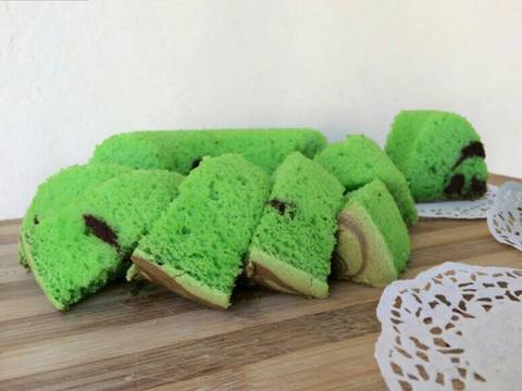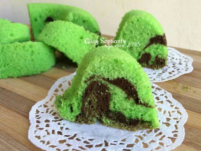 6. NOTE : jika ingin membuat motif, ambil beberapa sendok, beri pasta, coklat bubuk atau pewarna. aduk. Tuang adonan keloyang begantian warna sesuai selera.